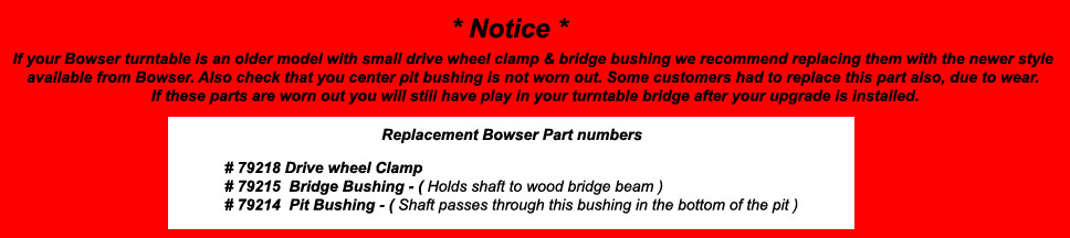 This Upgrade kit below is only for upgrading other manufactures turntables such as Bowser & Diamond Scale.