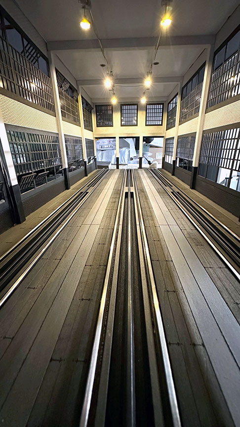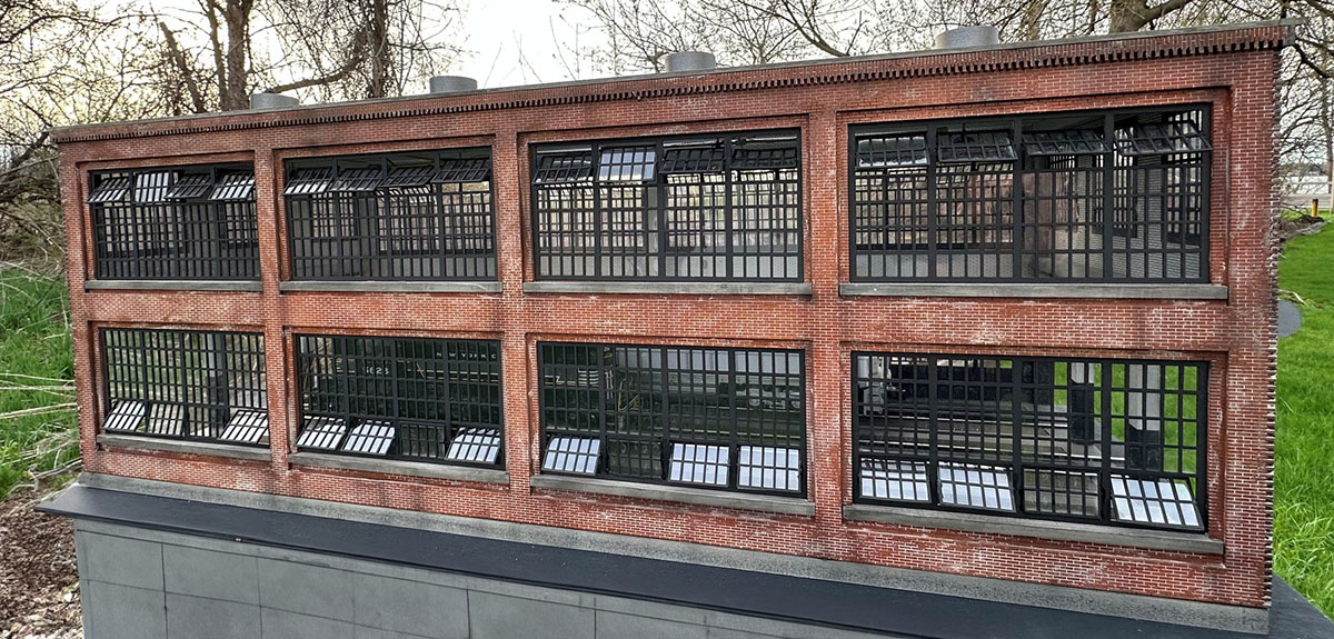 An example of simplicity is our main side wall of the roundhouse is cut out of two layers to give the recessed brick around the windows.